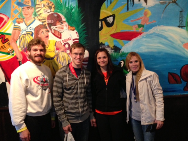 Just 4 weeks after running the New York City Marathon I sought redemption and drove east with Jonathan Bennett to run in the Baton Rouge Beach Marathon. We wouldn’t arrive until late Friday evening and the race was on Saturday morning. I was really happy with the Baton Rouge race packet, a medium sized bright green tech shirt, a pair of equally loud socks and a pair of gloves. Jeff took along his bike so Jonathan could try and find me on the course after he finished the half to offer me support and encouragement. About 1,500 runners were registered in the half and 200 runners in the full. I wished Jonathan good luck, crossed over to my side and literally toed the line. Within the first couple miles I found myself running with a group of triathletes, sharing our stories and goals. Our little group didn’t last too long as we settled into the pace we wanted to hold for the race. My strategy was to run comfortable the first half, and by mile 5 I was running alone at 6:40/mile pace, on pace to break 2:55. After getting water from the mile 18 aid station, I heard a murmur of cheers and applause. I knew I’d be crushed if I should fail to stay ahead, so we ran together for a couple miles. The late miles and weather finally got to me when I pulled to the side shortly into the 25th mile due to leg cramps. I saw the clock tick past Boston Qualifying time. I crossed the timing mat in a time of 3:11:28. Not the most impressive time, but a finish nonetheless. Jonathan saw me cross the finish and came up to congratulate me. I don’t remember having as much fun at the New York finish, which was all hustle and bustle, typical of the New York lifestyle. We killed some time lounging and walking around listening to music while waiting for the awards to be handed out.