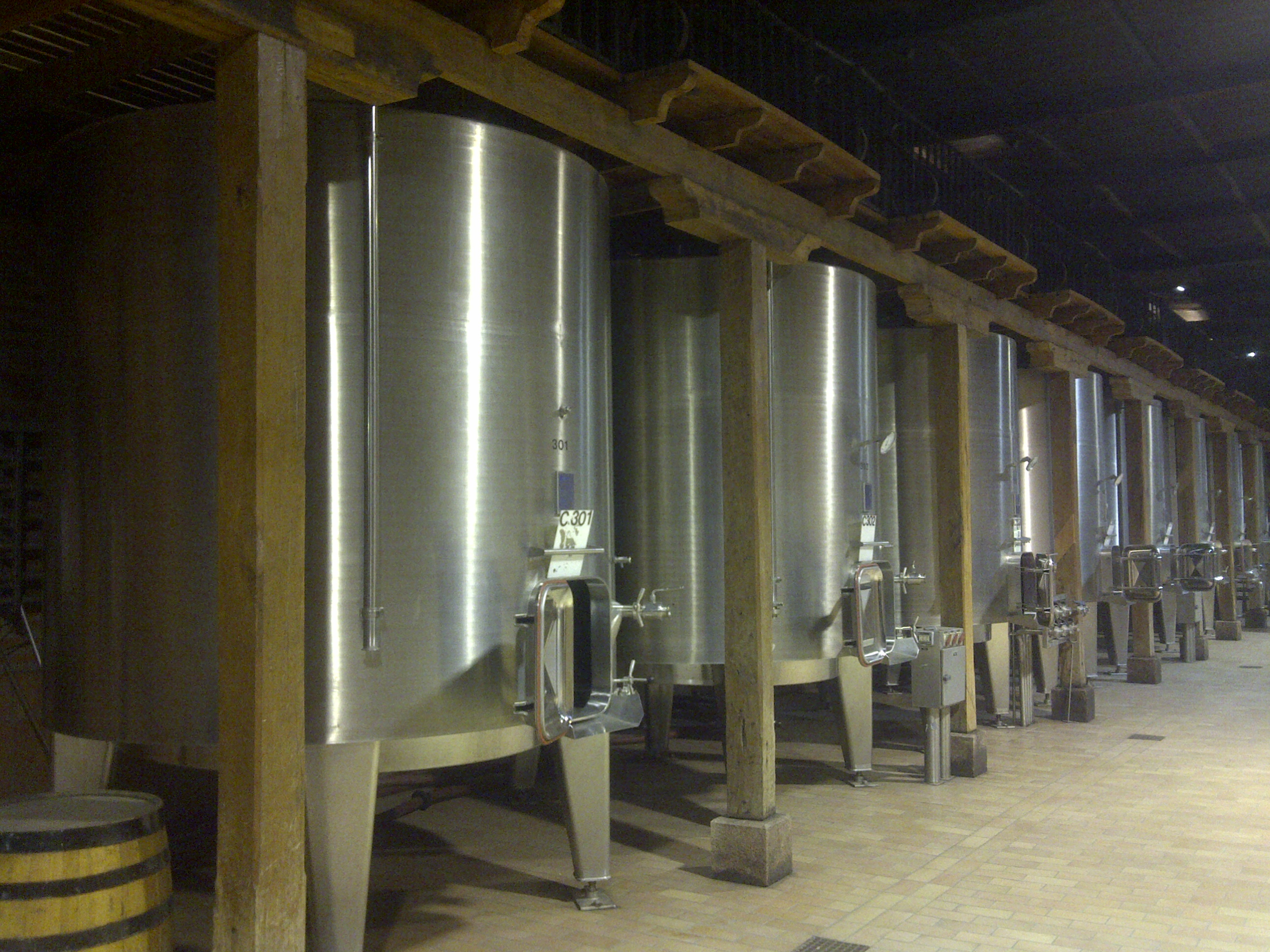 He then led us into the fermentation warehouse where we walked in a tunnel of 5 meter tall barrels with a capacity to hold 60,000 liters. These were used up until 1994, when the winery had to make the transition to stainless steel tanks in order to remain competetive in the market. Now they are merely preserved and left on display as a memory to traditional methods. The modern stainless steel tanks are computer-monitered 24/7 and speed the fermentation process for the transfer of the wine into french oak barrels to be aged for 3 years when the wine is bottled and aged for another 3 years. Thus my purchase of a 2008 bottle of Lota, the baby I’vel been taking care of until I return to Houston.