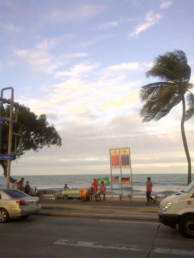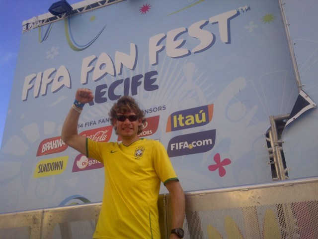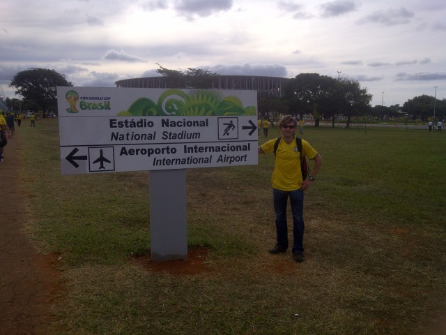 I was to meet with my foreign exchange brother, Caio, before the game but we could not locate each other in the sea of yellow/green and red/green. It didn’t help that both of us were wearing Brasil’s yellow/green jersey! I walked around to see The National Stadium and watch fans perform live music and dance before the start, then watched the game at a nearby square. The fans on hand were all cheering on Brasil. I could also hear the sounds from the stadium and see the fireworks after Brasil’s goals, winning 4-1. I should have learned by now that I needn’t to have rushed to the airport to catch my flight to Recife, because it was purposely delayed for the purpose of fans coming from the game.