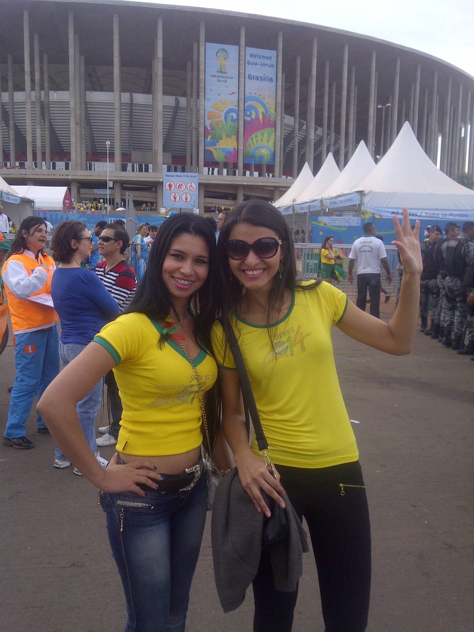 Chris and I baked 2 apple pies to thank our gracious hosts and in the spirit of The World Cup shaped the top crusts as the US and Brasilian flags. Jesica drove us as close to the stadium as she could and we walked the rest of the way each with 2 cold ones after buying a vendor’s ‘promocao’ of 2 Brahma beers for 5 Reis, que legal!